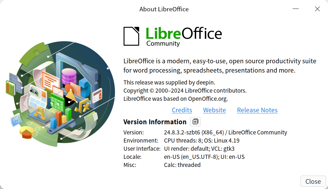 В составе операционной системы есть всё самое необходимое для базовой работы, включая интернет-браузер, медиаплеер и магазин приложений. Система выглядит современно и предоставляет все основные возможности, необходимые для типичного домашнего и офисного пользователя. Магазин достаточно продвинутый удобный, он предлагает широкий набор ПО для разных применений, есть разделы по категориям, рейтингу и т. п., поддерживается автоматическое обновление, есть отзывы пользователей — всё как обычно. Более того, именно в x86-версии он выгодно отличается от ранее рассмотренных нами LoongArch64 и ARM версий — количество представленных в этом магазине программ куда больше. В отличие от UOS на базе Loongson, сразу же предлагается полноценный офисный пакет — LibreOffice свежей версии.
