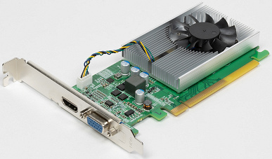 Интересно, что хотя процессор Zhaoxin имеет встроенное графическое ядро под наименованием ZX C-1190 с приличными возможностями, но в ПК на его основе от Lenovo установлена еще и внешняя видеокарта дочерней компании — Glenfly Arise1020. Мы рассмотрим возможности этих GPU подробнее уже во второй части статьи с тестированием в Windows, но уже по фотографиям понятно, что ничего особенного и от нее ждать не нужно — это очень простенькая и слабая видеокарта с 2 ГБ памяти, достаточная для вывода 2D-картинки, декодирования видео в распространенных форматах, а также очень простого 3D-рендеринга. Всё это может и встроенный GPU, и зачем сюда ставить еще и отдельную видеокарту — вопрос.