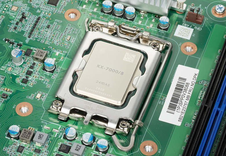 Еще одно важное отличие KX-7000 от предшественников заключается в его физическом воплощении — ранее продукты компании были в корпусах BGA и припаивались на системную плату, и на рынке существовали в формате готового ПК или системной платы с впаянным CPU, а процессоры серии KX-7000 используют разъем LGA 1700 и их можно вставлять и вынимать из системной платы, что привычно по решениям AMD и Intel. В Zhaoxin используют разъем LGA 4677 для своих серверных чипов серии KH-40000, а LGA 1700 — для процессоров для настольных ПК.