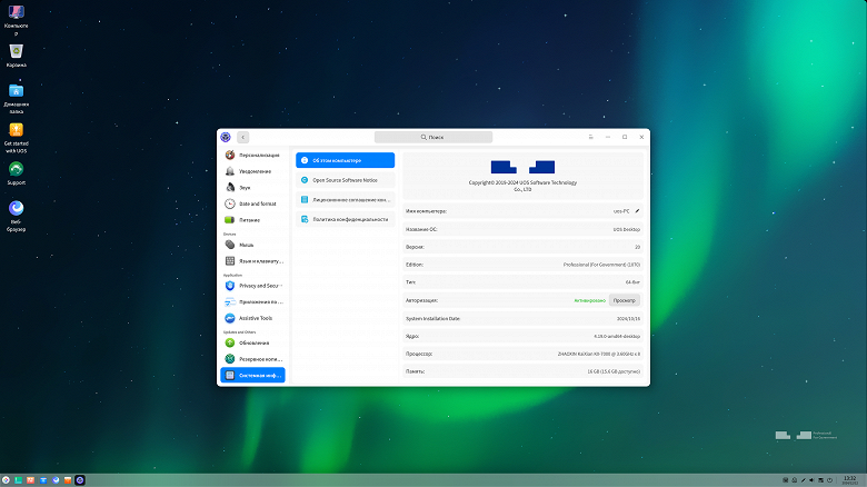 Так как процессоры Zhaoxin полностью поддерживают набор команд x86, то они совместимы с соответствующими операционными системами, включая Microsoft Windows и существующие многочисленные вариации Linux. Кроме этого, в Китае был разработан и собственный вариант на основе Linux — Unity OS (UOS), операционная система китайской разработки от компании Tongxin Software, основанная на дистрибутиве Deepin. Мы уже не раз рассматривали эту систему в своих материалах о китайских процессорах, она существует в версиях для x86, ARM и LoongArch.