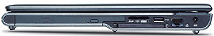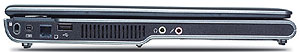 Такому сходству способствует и отсутствие защелки крышки. В остальном решение переднего торца осталось традиционным для Acer динамики расположены спереди, между ними кнопки-индикаторы включения/отключения беспроводной сети 802.11b/g и Bluetooth с соответствующими индикаторами, а также индикаторы включения ноутбука и зарядки аккумуляторной батареи. Сравните, например, с моделью TravelMate 8000.