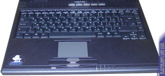 Достаточно симпатично выглядит тачпэд. Он похож на аналогичную деталь ASUS B1, только в двуцветном исполнении. Вообще говоря, серебристые детали хорошо смотрятся и подчеркивают строгость дизайна ноутбука. «Качалка» управления звуком Digital VR volume control перекочевала с модели В1, изменив лишь цвет. Правда, расположение динамиков таково, что о приличном качестве звука говорить не приходится. Для тех, кому качество важно, есть S/PDIF выход. Правда, оптического кабеля в комплекте нет.