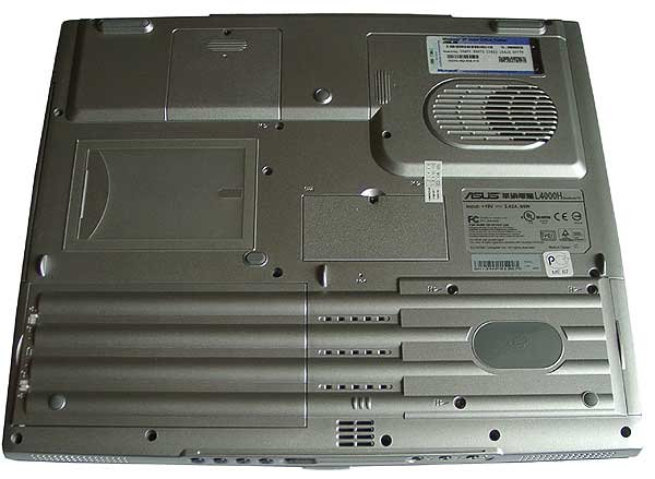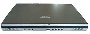 Динамики на переднем торце  тоже привычный атрибут ноутбуков ASUS. В данном случае такое их расположение позволяет прослушивать музыку при выключенном компьютере с использованием блока управления проигрыванием компакт-дисков. Вообще, у модели L4H передний торец «отвечает» за звук  разъемы Microphone-in, Line-in и Headphone/S/PDIF расположены здесь же.