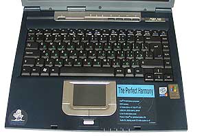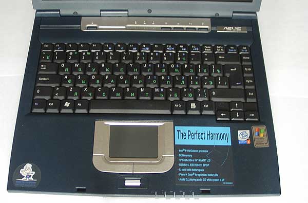 Под крышкой  тоже ASUS :) Что, в общем-то, неудивительно. Сразу бросается в глаза необычное решение тачпэда  вместо клавиш скроллинга здесь используется колесико.