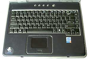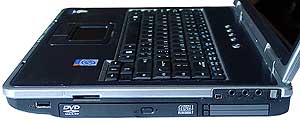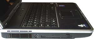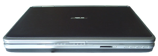Отверстия динамиков расположены по бокам в передней части нижней крышки ноутбука. Сами динамики при этом находятся где-то в глубине. Звук дя ноутбука очень приличный, правда, при условии, что ноутбук стоит на «голом» столе. Если поставить, например, на скатерть, звук мгновенно становится «ватным». это вполне понятно, так как акустика расчитана на отражение звука от поверхности. Классику слушать на такой акустике я бы, конечно не советовал, но в целом звук для ноутбука очень достойный. Так что ASUS L5  одна из немногих моделей, в которой наличие отдельного блока кнопок управления проигрыванием CD оправдано.