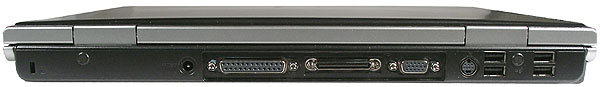 PortBar III никаких дополнительных разъемов по сравнению с имеющимися в ноутбуке не несет. Смысл его использования состоит в том, что можно один раз подключить кабель локальной сети, кабель питания и, допустим, внешний монитор, а затем просто подсоединять ноутбук к PortBar. Соединение осуществляется посредством короткого кабеля (на фото в транспортном положении).