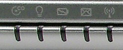 Все они, кроме кнопки переключения режимов энергопотребления, на мой взгляд, слишком малы для того, чтобы их было удобно нажимать. Если для отключения беспроводной сети и тачпэда это приемлемо эти действия выполняются не так часто, то вызов браузера и почтового клиента удобнее осуществлять без использования кнопок. Здесь же, рядом, расположены индикаторы обмена с устройствами хранения информации и Lock-ов. Они также голубые.