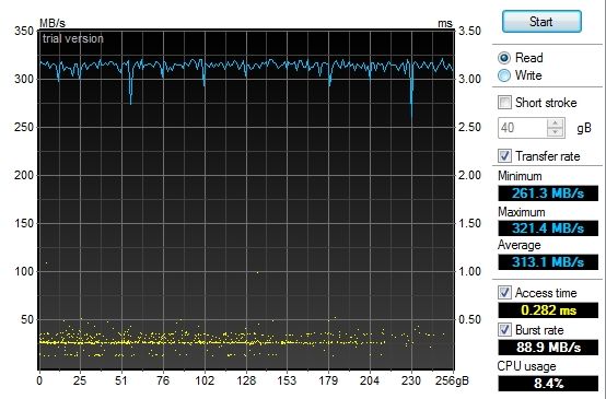 В общем, подсистема памяти если не лучшая из доступных, то очень близка к ней. Если честно, меня скорость работы накопителя впечатлила.