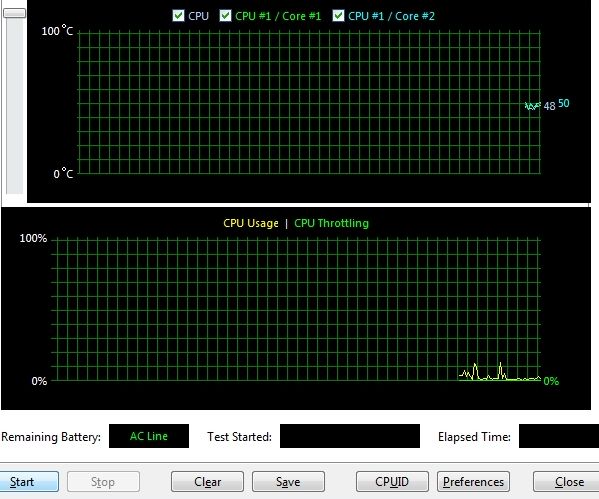 Перед началом теста температура находится на неплохом уровне в 50 градусов.