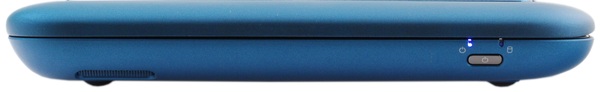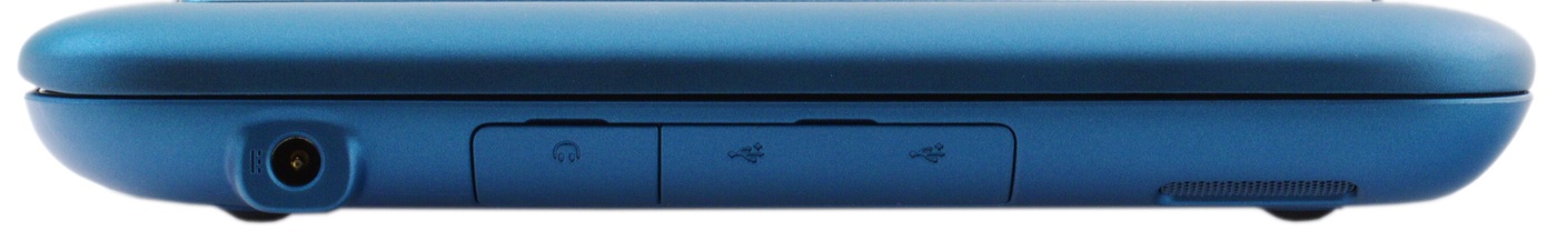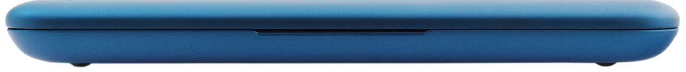 На передней грани ничего нет. Обратите внимание на конфигурацию боковых граней корпуса. Благодаря такой форме нетбук шикарно ложится в руки.