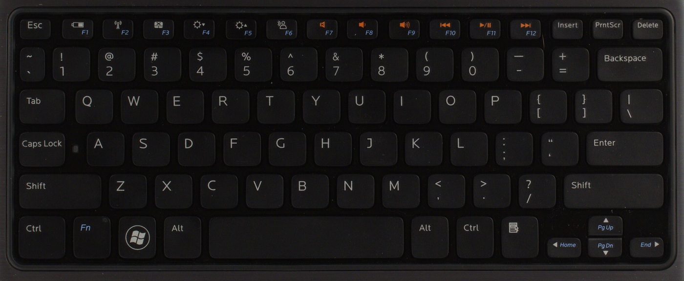 На клавиатуре — обычный набор функций по управлению нетбуком, но есть неожиданное и неприятное открытие: нет сочетания, которым можно отправить его в сон. Другими словами, приходится пользоваться либо меню Windows, либо неудобной клавишей питания.