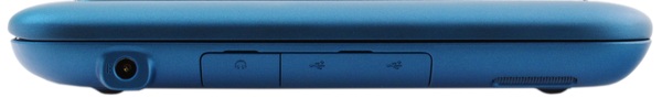 На левой грани в первую очередь бросается в глаза разъем для штекера питания. Он единственный находится снаружи и вынесен на специальную небольшую площадку. Комбинированный аудиоразъем и разъемы USB вынесены под крышечки, причем под разные.