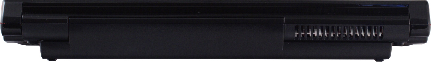 Нижняя крышка из простенькой черной шершавой пластмассы. Впрочем, в настольной модели это вполне оправданное решение, вряд ли кто-то увидит ее дно. Также стоит отметить, что батарея сильно выдается из корпуса вниз, больше чем на сантиметр. Из-за этого, во-первых, между ноутбуком и поверхностью, на которой он стоит, образуется большой зазор, в котором циркулирует воздух, а во-вторых, создается пространство, в котором работает «сабвуфер ноутбука».