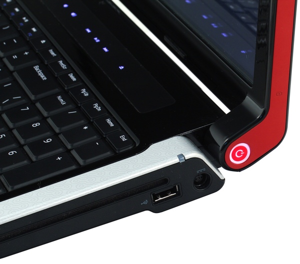 Первые минут пять знакомства с ноутбуком проходят в поисках кнопки включения. Она здесь почему-то сделана, как в ноутбуках Sony, с торца корпуса. Причем если ноутбук выключен, то партизанская кнопка ничем не выдает своего присутствия, а искать ее сбоку догадываешься не сразу.