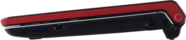 Наконец, правая грань. Здесь находится порт mini-FireWire, картовод (на фотографии в него вставлена карта памяти SD, а так там вытаскивающаяся заглушка), порт USB, щель оптического привода, еще один разъем USB, который немного заходит под привод, разъем для штекера питания и пресловутая кнопка включения.
