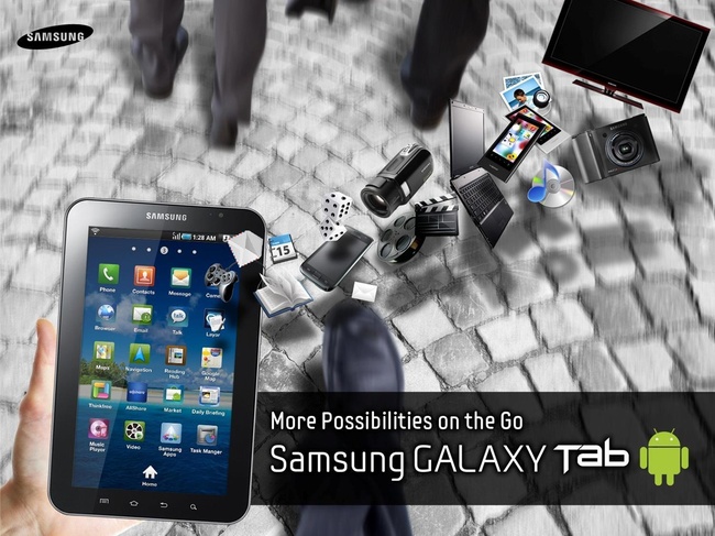 Согласно пресс-релизу, планшет ориентирован на просмотр фильмов и изображений, чтение книг, работу с документами. Для Galaxy Tab заявлена поддержка видео высокого разрешения вплоть до формата 1080р. Заявлена поддержка всех основных форматов кодирования, включая DivX, XviD, H.263, H.264. Плюс, это универсальное устройство для серфинга в интернете, а также телефон, с помощью которого можно совершать голосовые и видеозвонки. Впрочем, презентация рисует еще более радужную картину: планшет может использоваться везде: на ходу, дома, на деловых переговорах и, наконец, при удаленной работе.