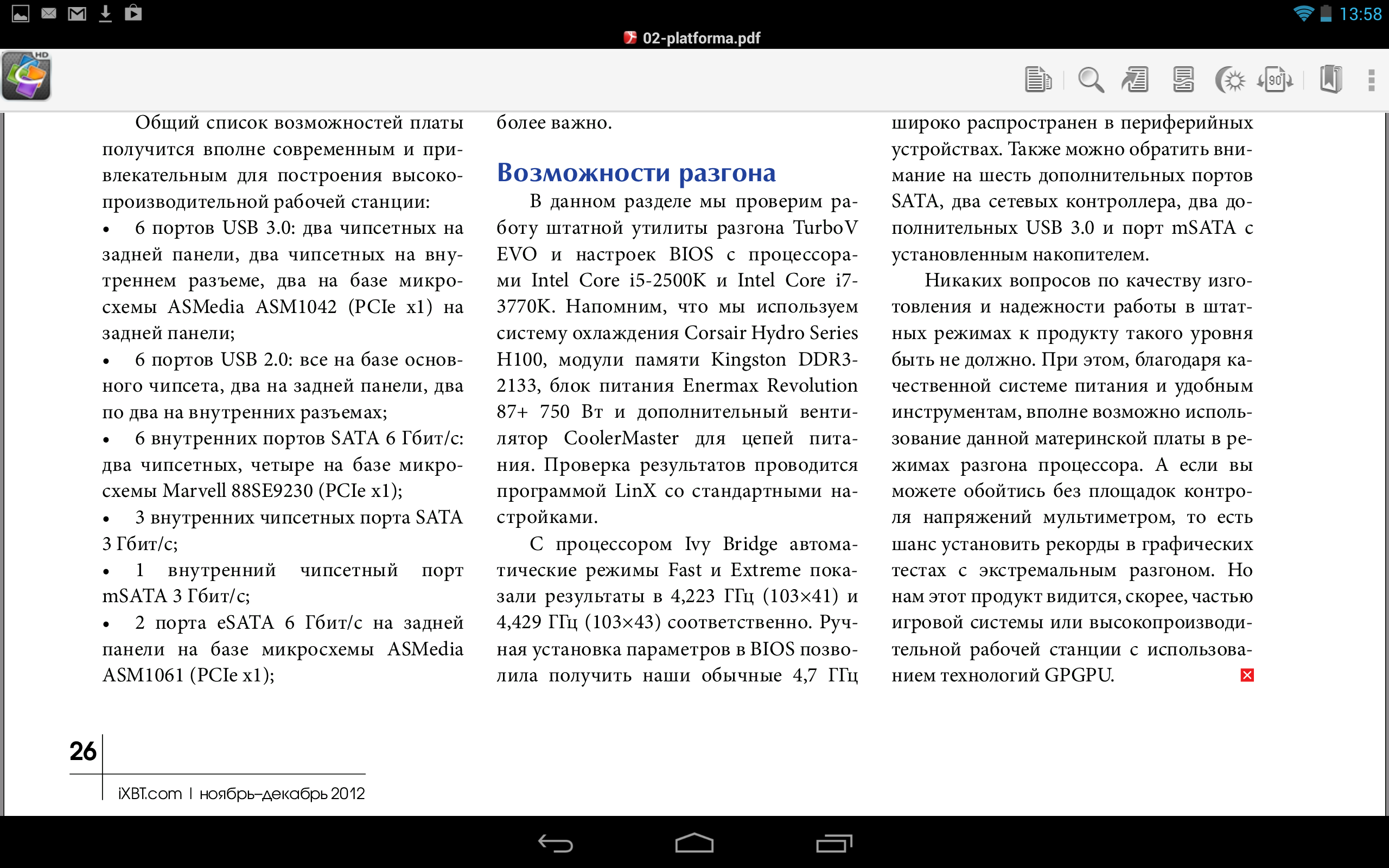 Никаких проблем с отображением PDF-файла штатными средствами тоже не было. Разве что открываются страницы долговато.