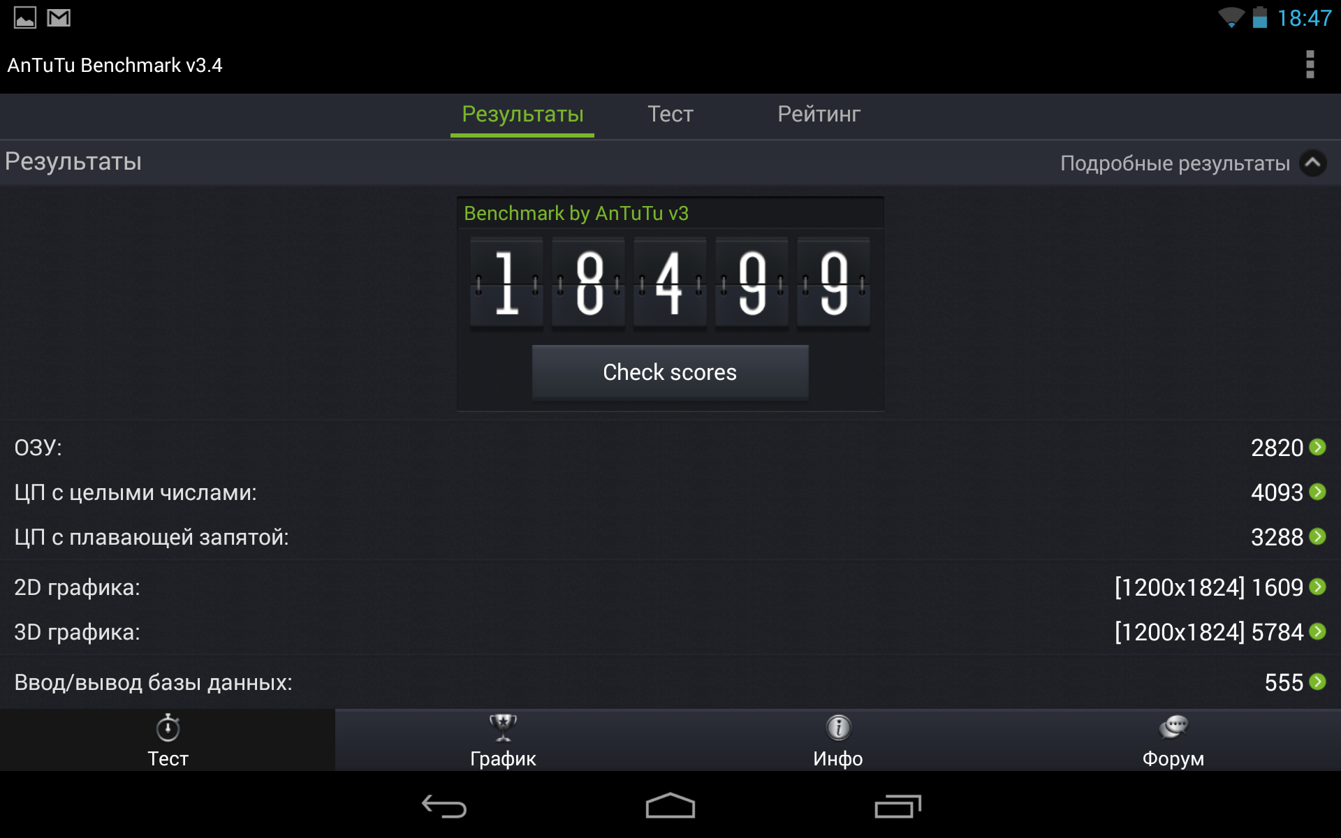 Особенно показателен отрыв новичка в AnTuTu Benchmark от Google Nexus 7 первого поколения: почти в два раза!