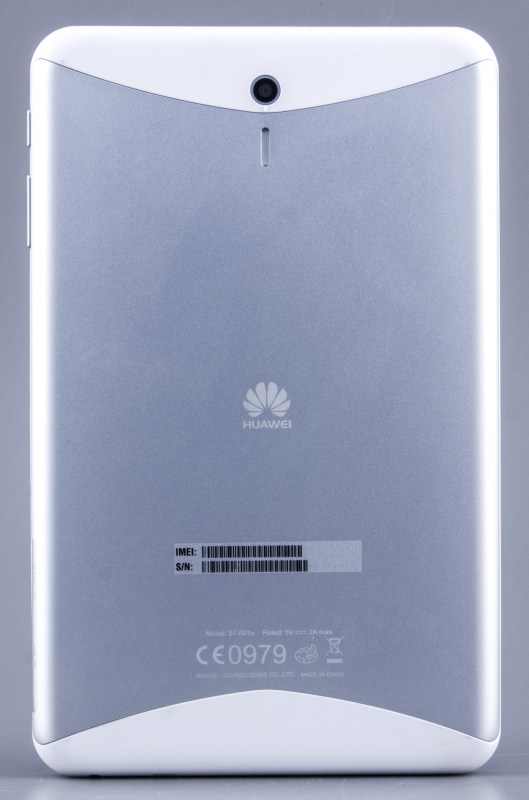 Задняя панель, как и в оригинальном MediaPad Lite, образована алюминиевой крышкой и двумя симметричными матовыми пластиковыми вставками. Но здесь они приобрели округлую форму, что сделало планшет более изящным, соответствующим своему второму названию — Vogue. В середине верхней вставки находится объектив тыльной камеры, а под ним — маленькая прорезь основного динамика, которую очень легко заслонить пальцем, практически полностью заглушив этим планшет.