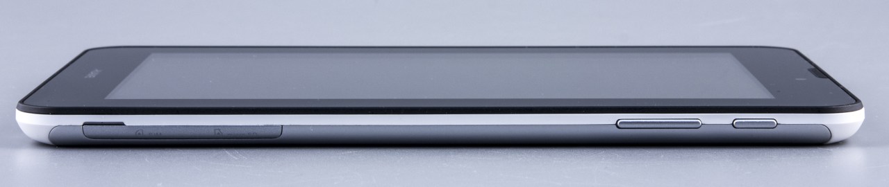 В нижнем левом углу планшета расположены разъем Micro-USB, 3,5-мм аудиовыход для подключения гарнитуры, а между ними — отверстие микрофона. Учитывая его расположение, использовать Huawei MediaPad 7 Lite 2 (Vogue) в качестве телефона удобно лишь если держать его у левого уха.