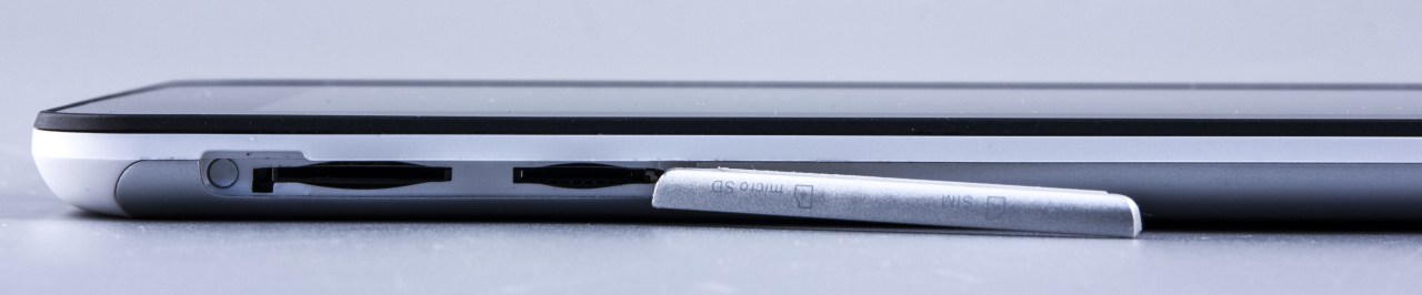 На этой же грани находятся прикрытые заглушкой разъемы для карты памяти и SIM-карты. Правильное положение для установки последней указано крошечной пиктограммой на рамке с краю. Хотя разъемы оснащены пружинками, с ними могут возникнуть проблемы: без помощи тонкого инструмента до вставленной SIM-карты дотянуться затруднительно.
