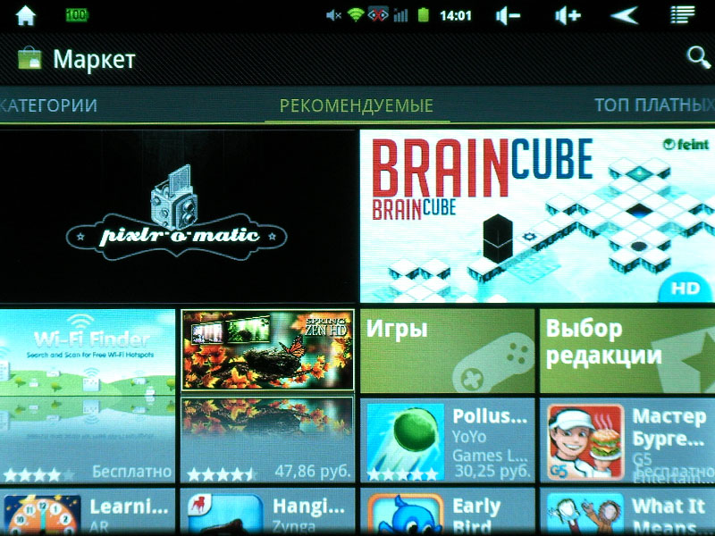 Наверное, расписывать Андроидные особенности в рамках данной статьи не имеет никакого смысла, скажем лишь, что на планшете установлена версия Android 2.3.1. Имеющиеся по умолчанию приложения охватывают всё необходимое для обычного повседневного использования устройства. Впрочем, вряд ли кто-то ограничится скромным набором стандартных приложений, и наверняка через несколько суток активной эксплуатации планшет окажется полностью укомплектованным по вкусу и разумению пользователя.