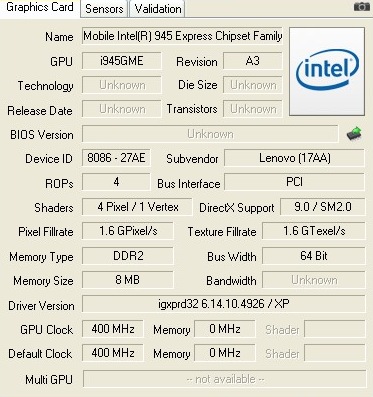 | Видеоадаптер | Intel Graphics Media Accelerator 950 |
