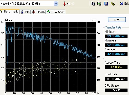 Наконец, очень интересно посмотреть на скорость работы жесткого диска.