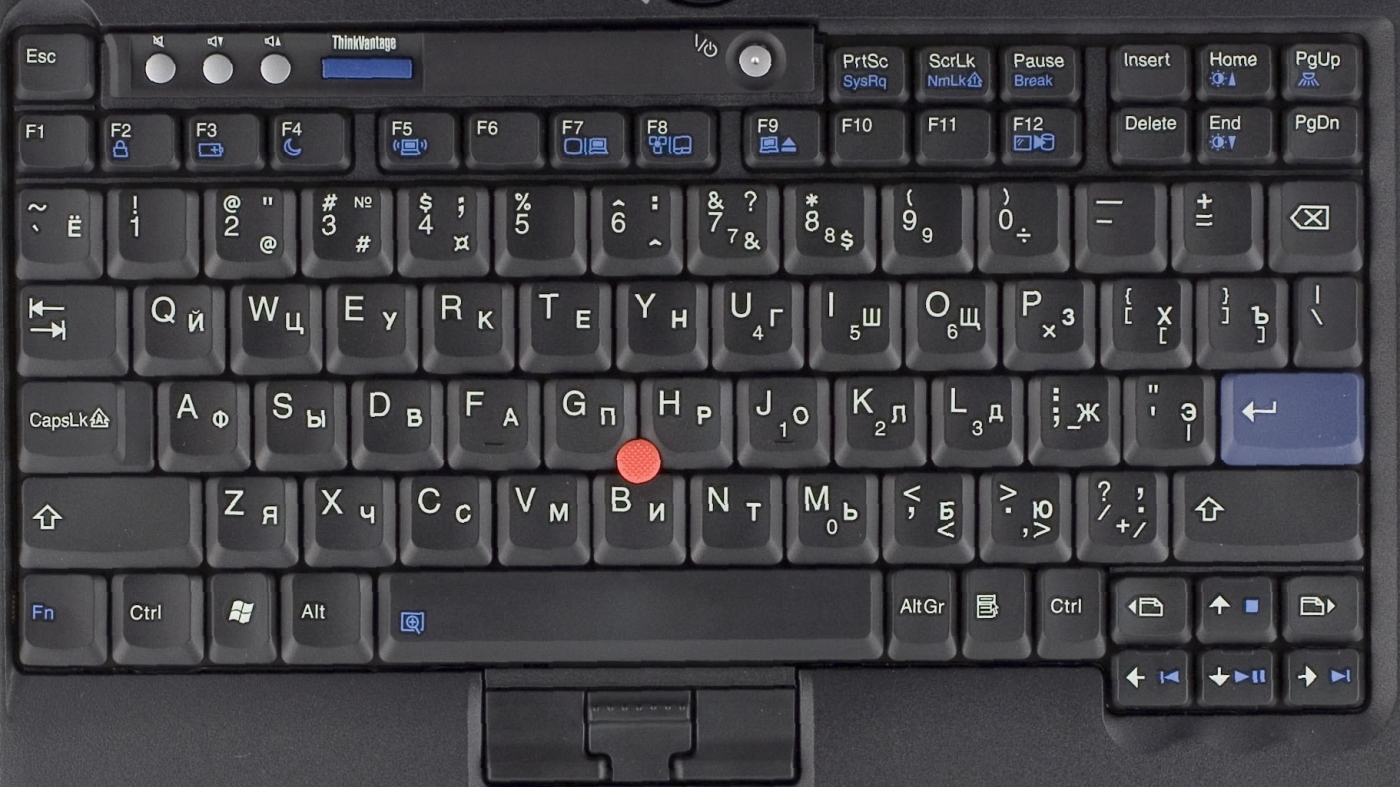 У всех ноутбуков Lenovo серии Think одинаковый набор клавиш — регулировка громкости (выше/ниже и выключение звука), а также клавиша Thinkvantage, вызывающая специальный лаунчер, в котором можно выбрать различные утилиты для работы с ноутбуком и его настройки.