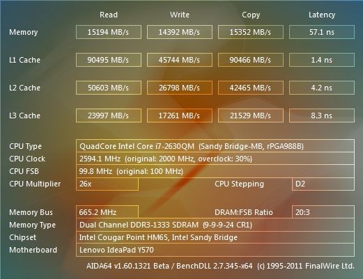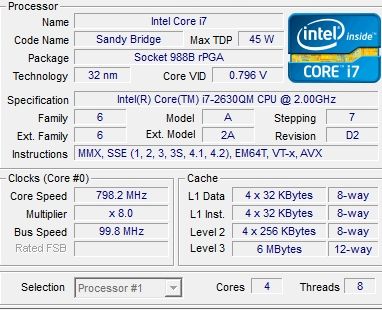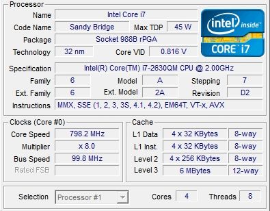 | Процессор | QuadCore Intel Core i7-2630QM, 2600 МГц (26×100) | |