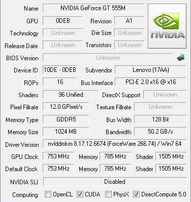 Кроме того, модель, которая сегодня у нас на тесте, имеет еще одну интересную особенность: в ней установлен мощный видеоадаптер NVIDIA GF 555M. Отметим, что им будут комплектоваться все 15-дюймовые ноутбуки этой линейки.