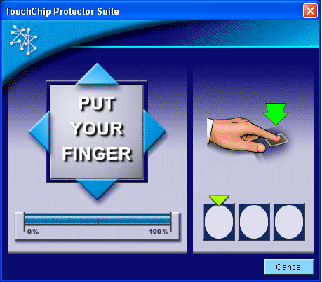 Осталось разобраться с устройством идентификации пользователя по отпечатку пальца. Сразу отмечу, что поддержки данного устройства в BIOS нет, защита идет на уровне операционной системы. В качестве программного обеспечения используется TouchChip Protector Suite версии 4.3. Возможности системы достаточно стандартные — идентификация пользователя по отпечатку пальца,