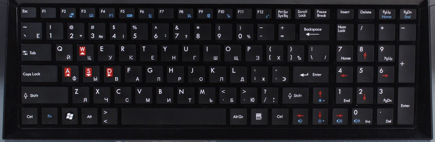 В раскладке присутствует цифровой блок. Это двойной плюс: можно не только вводить цифры, но и использовать его как курсор — многие игроки предпочитают именно его (особенно если речь идет об играх, где мышь не задействуется).