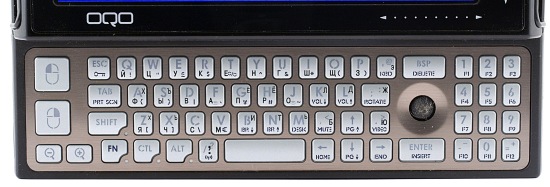 Как и у всех аналогичных устройств, клавиатура оптимизирована для работы большими пальцами. При работе OQO держишь двумя руками, а большие пальцы лежат на клавиатуре. Функциональность клавиатуры очень продумана.