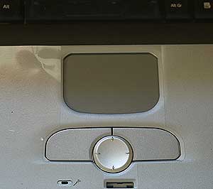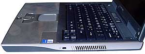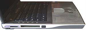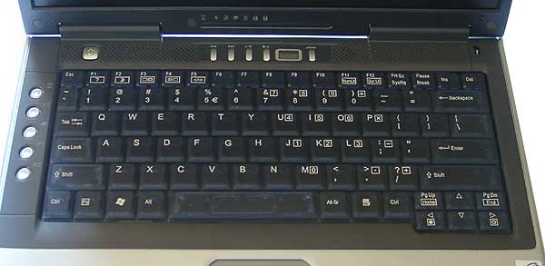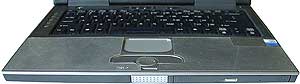 Панель кнопок быстрого вызова приложений расположена слева сбоку, из-за чего пришлось уменьшить размер клавиатуры и оказался «съеден» правый столбец клавиш. В результате клавиатура получилась «субноутбучная». На мой взгляд, это ошибочное решение удобство клавиатуры заведомо важнее и дизайнерских изысков и нескольких кнопок. Отсутствие на клавиатуре русского алфавита издержки сэмпла. В продажу пойдут ноутбуки с локализованной клавиатурой. Сама панель кнопок быстрого вызова достаточно стандартная.