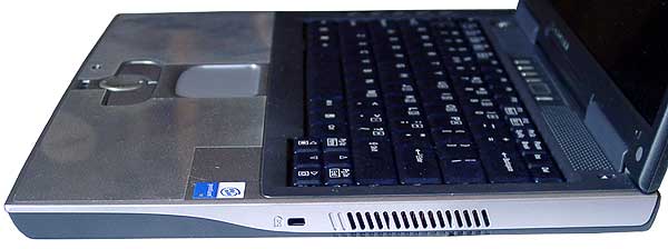 А вот правая боковина «голая». Кроме разъема для замка Кенсингтона и решетки системы вентиляции там нет ничего. Это уже нелогично большинство пользователей праворукие. Тем более, что в задней части свободное место есть, так что порты USB и IEEE1394 здесь смотрелись бы логичнее.