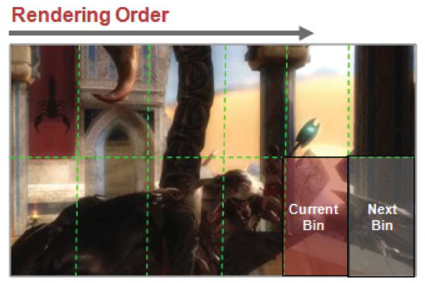 В случае таких архитектур рендеринг идёт над участками кадра по очереди. Сначала один кусочек (тайл), затем другой. За счёт такой архитектуры достигается преимущество в условиях недостатка пропускной способности памяти, но есть у неё и свои недостатки, которые могут проявиться при увеличении геометрической сложности сцены, так как в её случае требуется предварительная сортировка полигонов. Впрочем, пока что это мобильных GPU не касается, и применение тайловых архитектур вполне оправдано. Посмотрим, что получится в будущем, а пока что поговорим о графическом ядре Adreno 225.