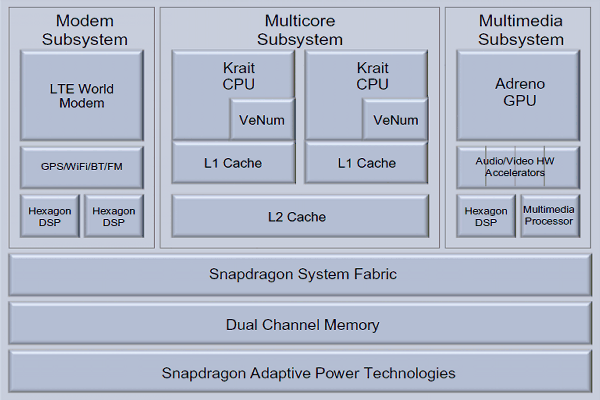 В упомянутых выше материалах мы подробно рассказывали, что такое системы-на-чипе (SoC) и из чего они состоят, упоминали и то, каким образом они разрабатываются разными компаниями. Так, большинство компаний берёт готовые дизайны вычислительных ARM-ядер и GPU у сторонних разработчиков и конструирует на основе этих блоков целые системы-на-чипе. Но некоторые производители, такие как Qualcomm, сами проектируют вычислительные ядра, совместимые с системой команд ARM. Таким было ядро Scorpion в предыдущих чипах компании, таким стало и ядро Krait в современных системах-на-чипе семейства Snapdragon S4, которое мы сегодня рассмотрим.