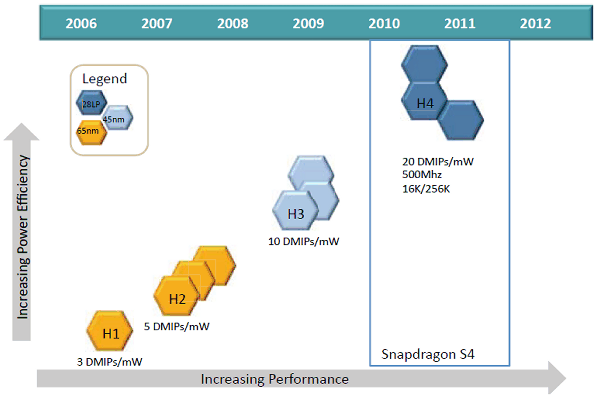 Системы-на-чипе компании Qualcomm с ядрами Krait стали первыми чипами для мобильных устройств, выпущенными на основе самого современного техпроцесса 28 нм. Хотя компания сотрудничает одновременно с производителями TSMC и Global Foundries, первые чипы семейства производятся на фабрике тайваньской TSMC. Для этих микросхем используется обычный техпроцесс 28 нм «LP», а не 40 нм «LPG», как для NVIDIA Tegra 3, например. О разнице в техпроцессах мы подробно писали в предварительном обзоре системы-на-чипе NVIDIA.