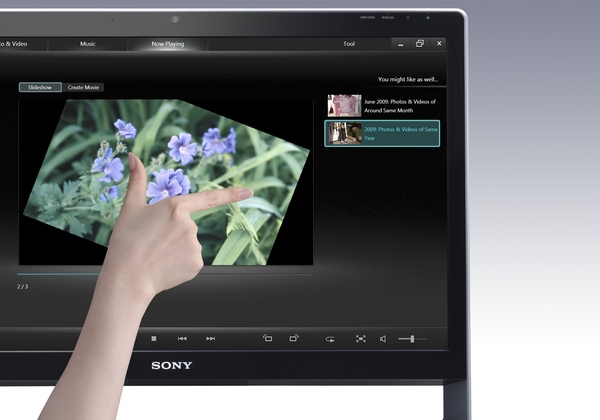 Центральным элементом нового моноблока от Sony является ЖК-экран с диагональю 24-дюйма, разрешением FullHD (1920х1080 точек) с форматом экрана 16:9. В мониторе реализована технология X-black, также матрица подсвечивается двумя лампами, что позволяет улучшить качество изображения. Экран чувствительный к нажатию пальцем и поддерживающий технологию мульти-тач.