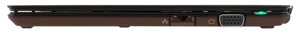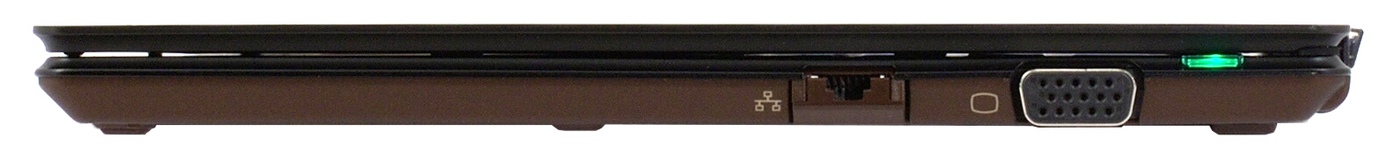 На правой грани расположен аналоговый выход на монитор VGA: инженеры Sony сочли, что именно он необходим в этой модели. Обратите внимание, что по толщине разъем самое толстое место ноутбука, т.е. если подключить к нему обычный кабель с толстым разъемом, то, скорее всего, закрытый ноутбук не встанет на ножки, а будет лежать на этом разъеме. Рядом расположен разъем для проводной сети. Он закрыт крышкой, которая в открытом положении заодно фиксирует разъем.