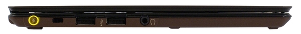 На левой грани расположен разъем питания (традиционно для разъемов Sony, он вызывает некоторые сомнения в прочности), порт замка Кенсингтона, два порта USB (для сверхпортативной модели хороший показатель) и единственный аудиоразъем для наушников.