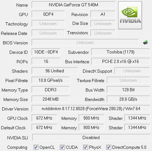 | Видеоподсистема | NVIDIA GeForce GT 540M, с поддержкой технологии CUDA и технологии NVIDIA Optimus*; 2048 МБ памяти DDR3, расширение до 4 ГБ | |