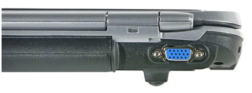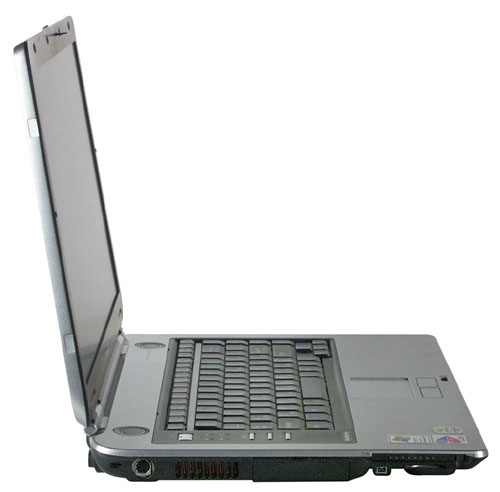 На левой стороне (слева направо) расположены: разъем для замка Кенсингтона, видеовыход (S-video, 4 pin), выхлопная решетка вентиляции, отсек жесткого диска. Дальше корпус делает прихотливый изгиб (опять начинается скос под 45 градусов). В верхней части, у торца, расположен единственный слот PCMCIA, ниже как бы вырастают из скошенной поверхности разъем IEEE1394 и картовод SD.