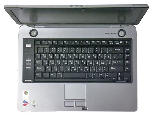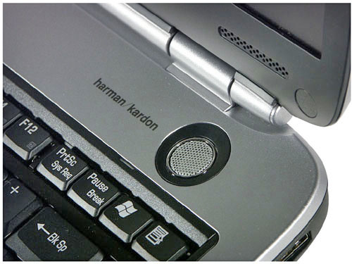 Сами решетки достаточно маленькие, что создает иллюзию установки «обычных пищалок». На деле это не так, установлены хорошие динамики Harman / kardon, которые дают весьма приличный звук (разве что басов маловато). Над динамиками в крышке сделаны сквозные отверстия, чтобы звук хорошо проигрывался при закрытой крышке. Тем не менее, при закрытой крышке звук сильно теряет в детальности, начинается «бубнеж», поэтому так слушать музыку невозможно.
