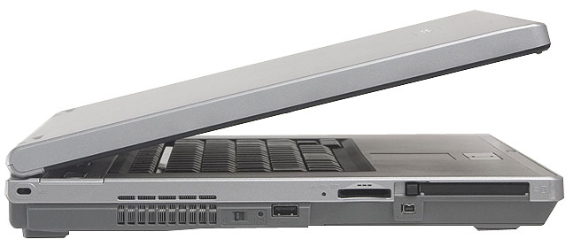 Как я уже писал, внешний вид ноутбука меня при первом знакомстве немного разочаровал. Стандартный «кирпич», серебристый сверху и серенький снизу. По сравнению, например, с моделью Satellite M30 смотрится, прямо скажем, не очень выгодно. Повторяю, это чисто субъективные впечатления, возможно, я просто отстал от современности. Давайте рассмотрим ноутбук со всех сторон.