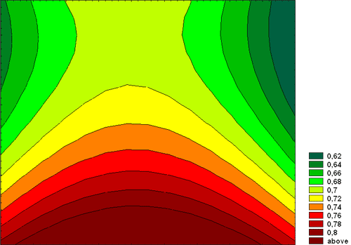 Поверхность, построенная по значениям контрастности. Изолинии через 10 единиц