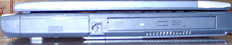 Справа: DVD, разъем для подключения телефонного кабеля и торец отсека с жестким диском. Место для модемного разъема выбрано
