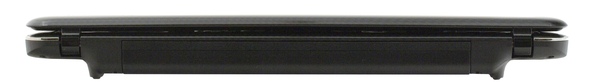 Батарейка в нашем экземпляре снизу сильно выступает из корпуса миллиметров на пять–шесть. Из-за этого ноутбук сбоку выглядит, как клин: с очень узкой передней частью корпуса и толстой задней. С большой батареей ноутбук стоит на столе неровно, задняя часть немного приподнята, в таком положении удобно печатать. Кроме того, за батарейку удобно браться как за ручку, когда несешь ноутбук в руке.