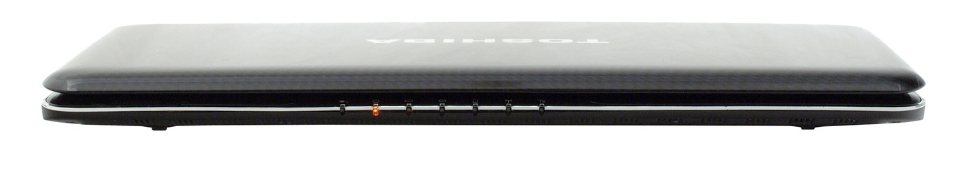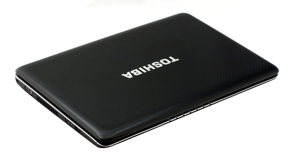 Крышка ноутбука глянцевая, поверхность покрыта текстурой, на крышке традиционная надпись «Toshiba» толстыми белыми буквами. Закрытый ноутбук выглядит достаточно симпатично, пока его не поносишь: после этого он весь покрывается отпечатками пальцев и приобретает неаккуратный вид. На лаковой поверхности тестового ноутбука уже было несколько царапок, хотя как с ними обращаются удивительно, что они вообще еще работают. Думаю, если ноутбук использовать неаккуратно (например, носить вместе с блоком питания), то крышка покроется сеткой царапин и помутнеет.